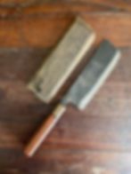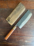 Vintage Japanese Santoku / Gyuto 170mmBlacksmith/Maker: Handmade SayaHigh carbon steel with stainless claddingSpine thickness: 4.8 mmWeight: 139 gVintage Japanese Gyuto 170mmSKU: SA0050$280.00PriceOut of Stock